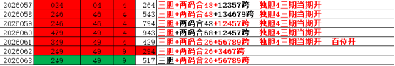 063期开出了517全奇组六形态,偏态间隔了4期之后出现了止跌反弹。昨天三胆终结了6连阳出现了蓝格子调整,昨天对码4的胆码出现了集体回调,目前都是连开之后的首次调整,既然出现了调整并且已经是处于高位,加速阶段已经走完,后期大概率是要走震荡了。三胆目前只是一个小调整,只要没有出现连续回调还是继续跟随趋势。组三昨天遗漏6这个点没有开出,现在高位落点处于真空期了,短期观望为主。
