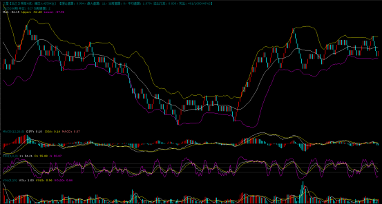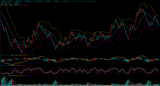 上图是组三的K线图,图中显示组三连续回调中,目前还没有止跌的迹象,K线离布林下轨还有下行的空间,继续下降是大概率事件。