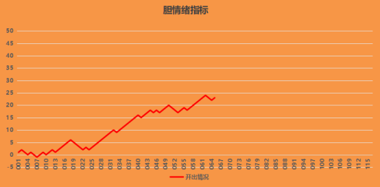 图中显示的是三胆的情绪指标趋势图,图中显示折点高位出现了连续回调之后昨天再度进入上升趋势中,目前警报解除,继续上攻是大概率事件。