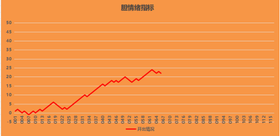 图中显示的是三胆的情绪指标趋势图,现在是处于上升趋势中的回调阶段,耐心等待调整结束后的反弹行情。