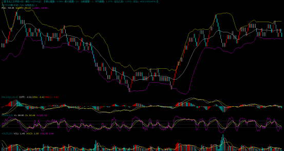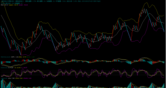 上图是偏态指标的K线图,图中显示昨天蓝格子出现了连开,现在K线又回到了箱体下沿支撑,今天有红格子反弹的概率。