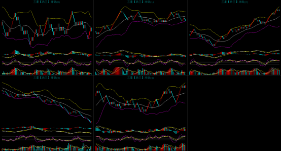 上图是对码胆的同屏图,昨天开出了934对应的对码是434开出了对码组三形态。图中可以看到目前没有明显的趋势性对码胆行情出现,前期出现了对码4的连续上攻行情,当时抓了一波,现在来看对码0,对码1,对码3都是走下降趋势,对码2和对码4都是高位震荡走节奏了,目前不是很好判断,耐心等待新的趋势性对码胆行情出现。