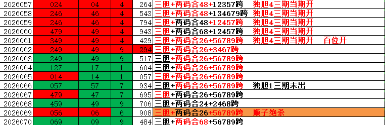 070期开出了484全偶组三形态,偏态出现了连开,三胆还是继续走节奏中,目前红蓝相间节奏还是很情绪,之前文章中也说过,上升趋势持续跟随,震荡趋势踏对节奏,下降趋势规避。每个阶段都有每个阶段的应对策略,市场也不是每天都有机会,不一定每天都需要参与。目前三胆属于震荡走节奏,就按照这个节奏踏步走,直到趋势出现转折。不要去预测行情,而是等待行情起来的时候乘风而起,顺势而为。大鹏同风一日起,扶摇直上九万里就是这么个道理,没有大风的情况下,大鹏也飞不到这么高。