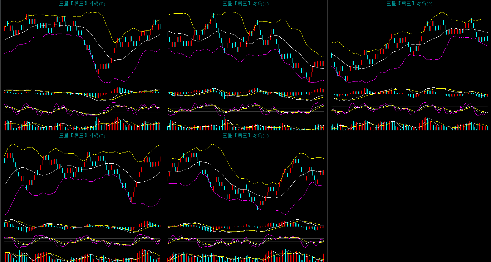上图是对码胆的同屏K线图,昨天开出了634对应的对码是134开出了对码组六形态。上图中可以看到对码0震荡上行中,目前是处于调整阶段,震荡不好判断,观望为主。对码1震荡走节奏,昨天红格子,今天蓝格子概率较大。对码2也是横盘震荡走节奏,昨天蓝格子,今天红格子概率较大。对码3昨天突破节奏继续上攻,今天红格子连开的概率较大。对码4继续反弹中,今天红格子概率较大。