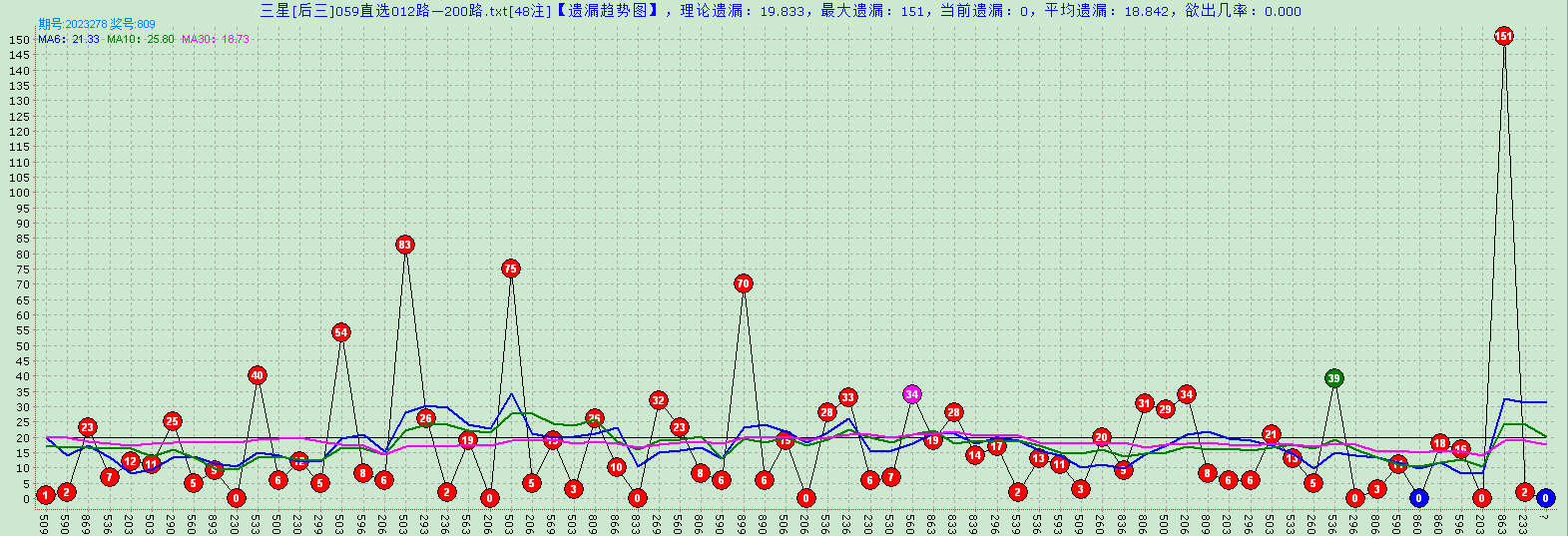 上图是直选200路(258/0369/0369)的遗漏图,图中显示前期大遗漏151开出之后,随后小遗漏出现了回补,落点上来看遗漏8之前机会还是比较大。目前来看小遗漏回补继续回补是大概率。