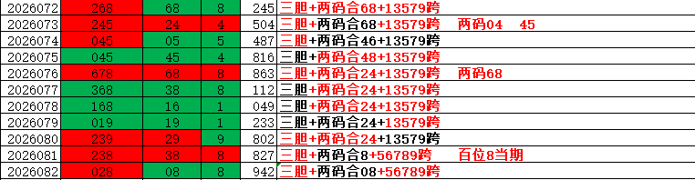 082期开出了942组六形态,三胆目前出现了三连阳的走势,局部趋势已经出现了转折。942对应的对码是442开出的是对码组三形态。近期对码组三持续走强中,上升趋势明显。组三这一波没有反弹起来,目前已经是遗漏3了,0-2这个周期开出了蓝格子。组三目前上攻乏力,现在处于继续探底的阶段中。